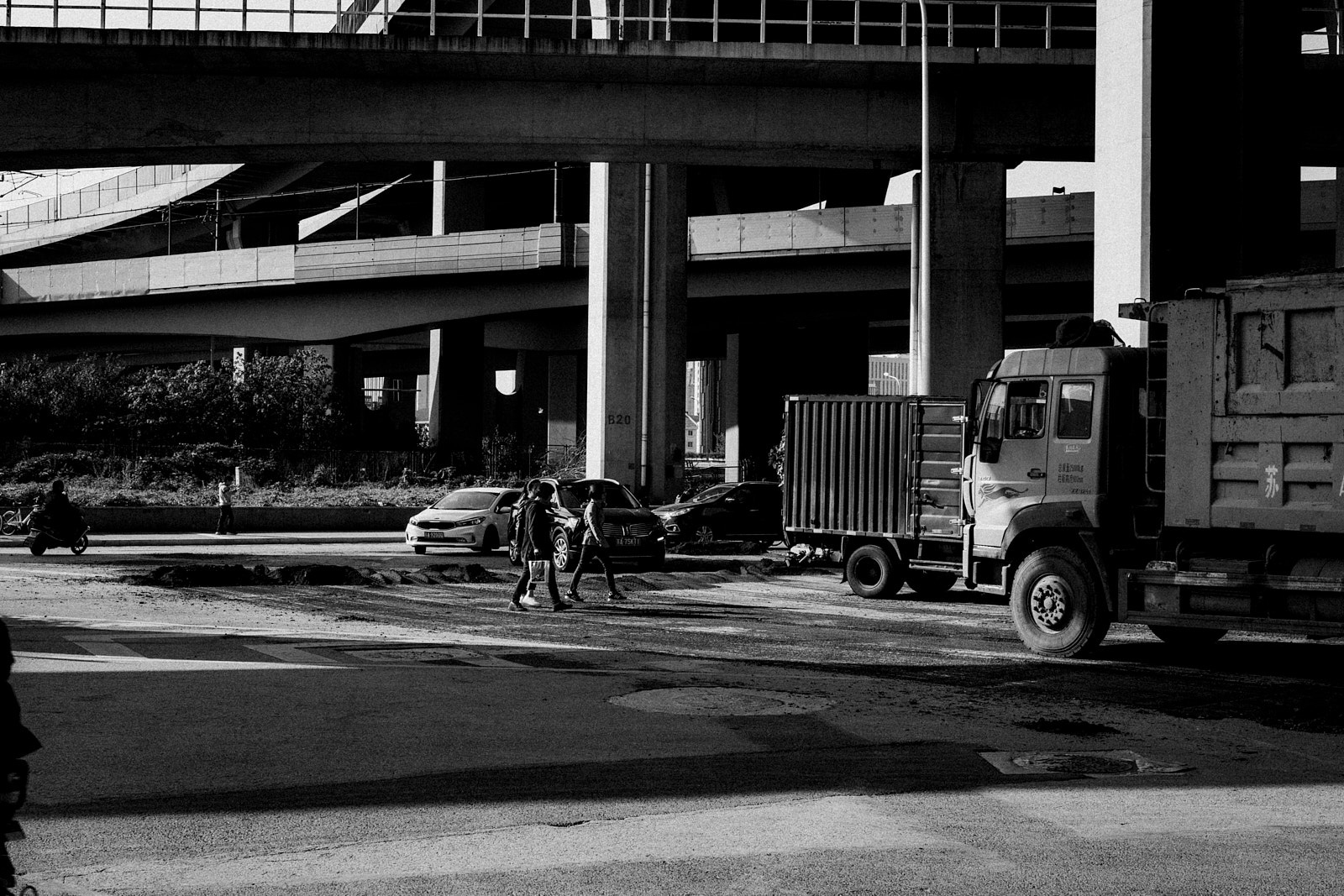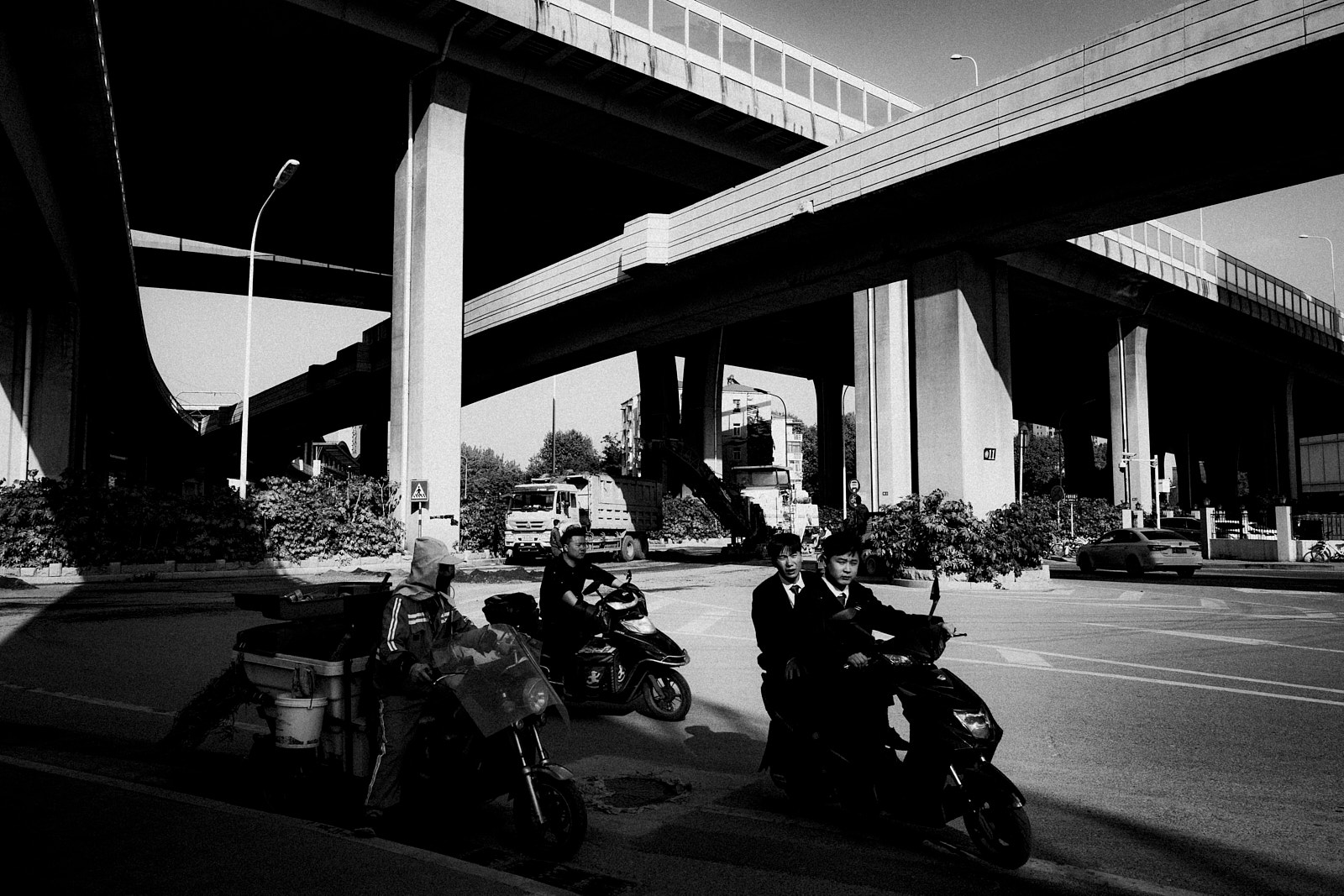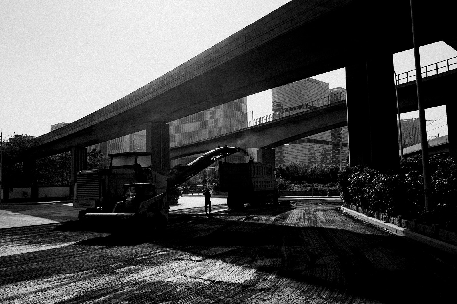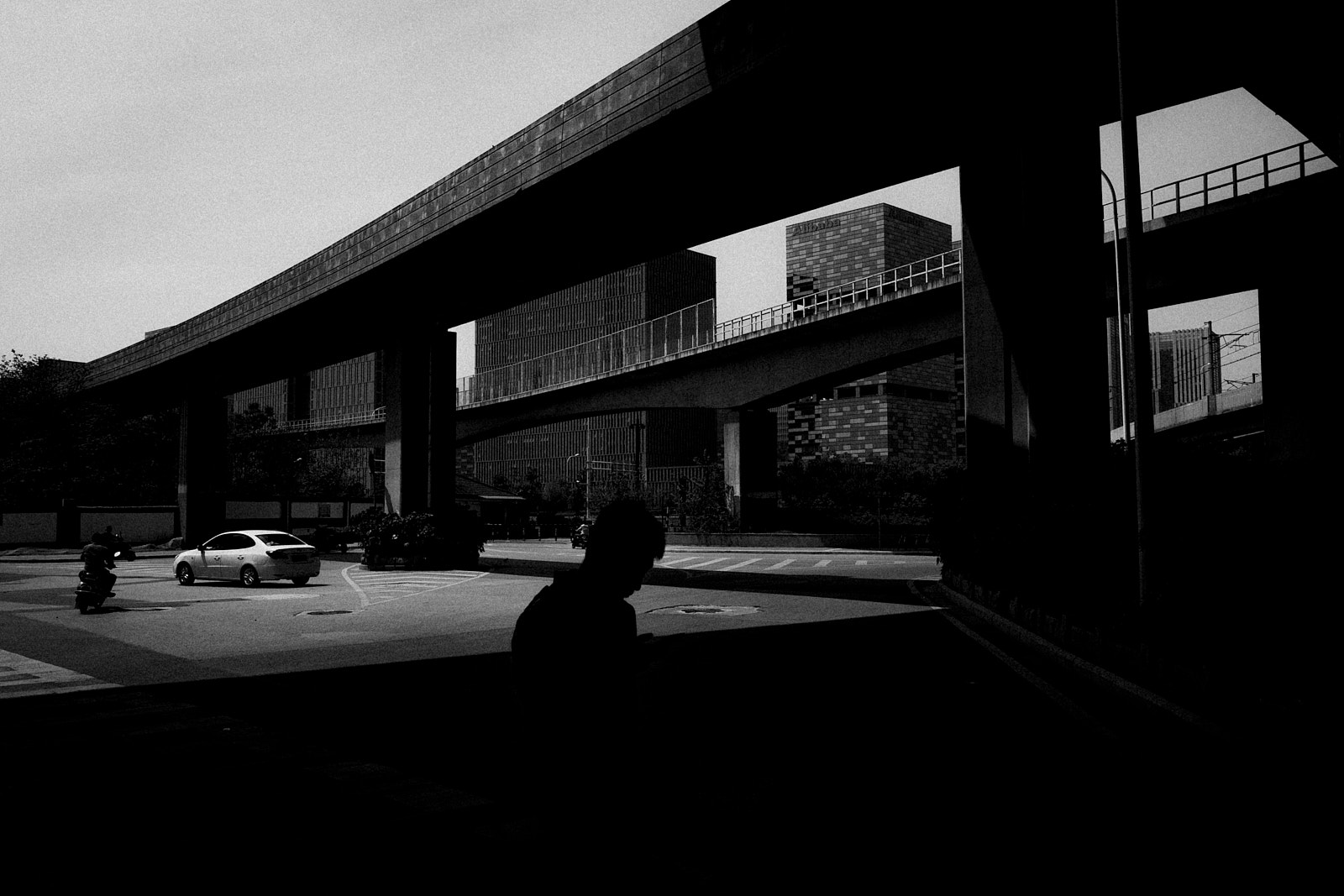 It is in this imperfection that I saw the poetry of the non place. Above my head, it is a tangle of high-speed track interchanges and overhead subway lines. At my level, a new tangle of road/railway crossings, and even the work in progress is not slowing down the traffic and the frenetic occupations of passers-by, car and scooter drivers.