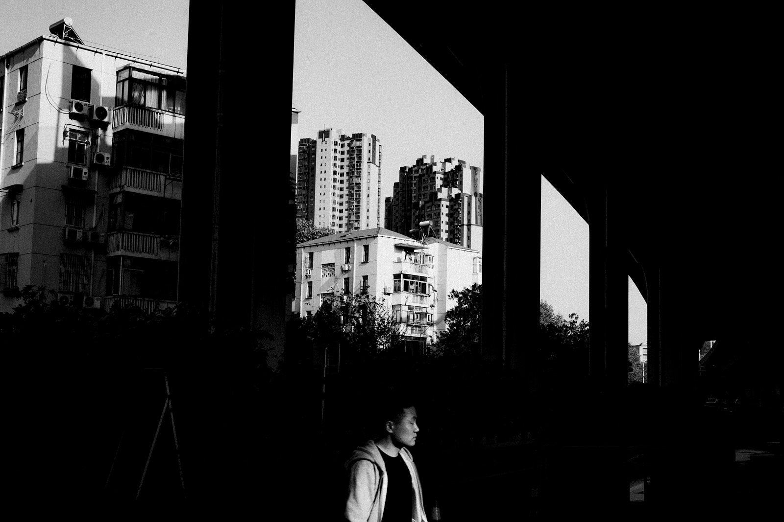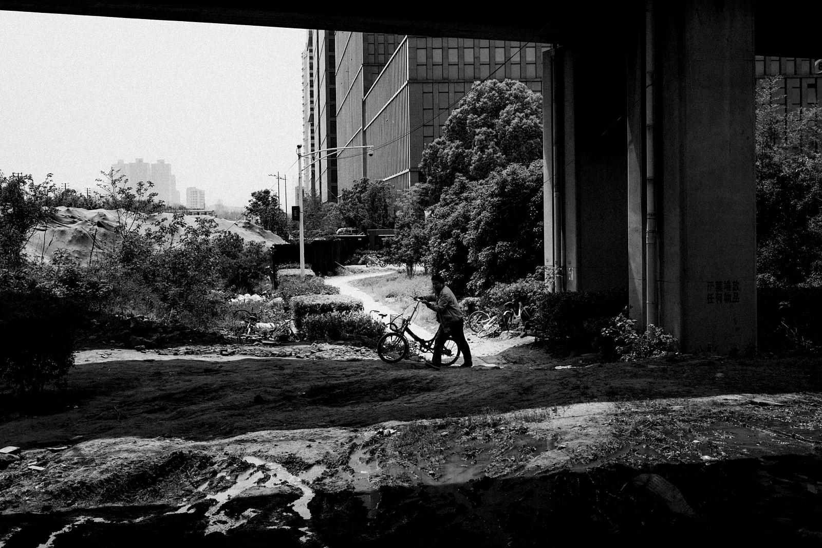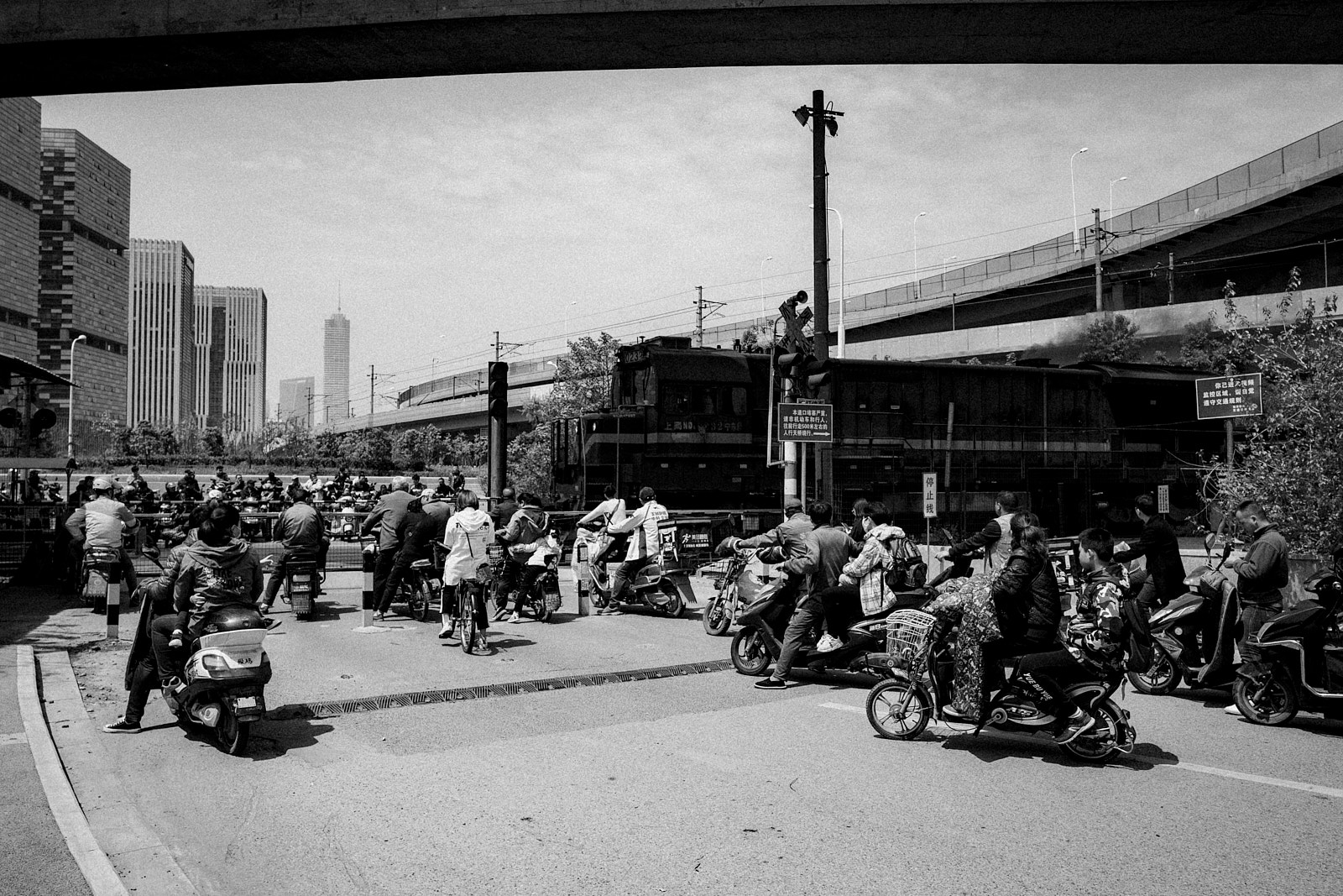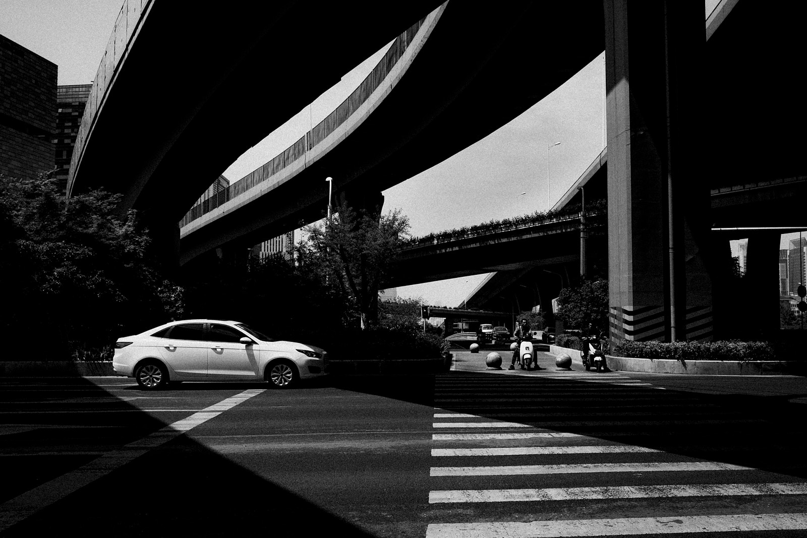 It is in this imperfection that I saw the poetry of the non place. Above my head, it is a tangle of high-speed track interchanges and overhead subway lines. At my level, a new tangle of road/railway crossings, and even the work in progress is not slowing down the traffic and the frenetic occupations of passers-by, car and scooter drivers.